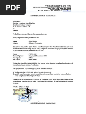 Surat Perpanjangan Visa Kunjungan. Tujuan dari dibuatnya surat jaminan ini adalah untuk menjamin kepastian hukum tentang suatu hal jika terjadi masalah dikemudian hari. Surat pernyataan tidak keberatan dari perusahaan untuk 3.
